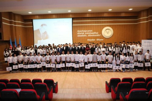 Ümummilli Lider Heydər Əliyevin və Vətən uğrunda həlak olan şəhidlərimizin əziz xatirəsinin 1 dəqiqəlik sükutla yad edilməsi və dövlət himninin səsləndirilməsi ilə başlanan görüşdə “Ümummilli Lider Heydər Əliyev müstəqil Azərbaycan Konstitusiyasının müəllifidir” adlı videoçarx nümayiş olunub.